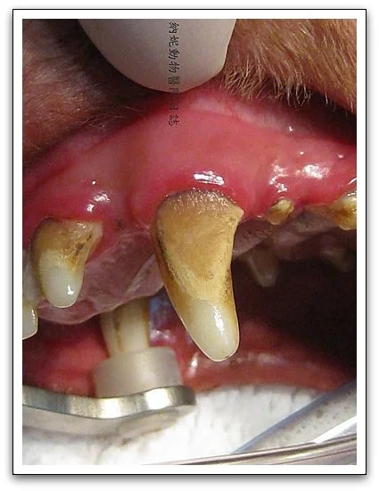 1. 許多牙結石會導致牙齦萎縮,使狗貓的牙根外露