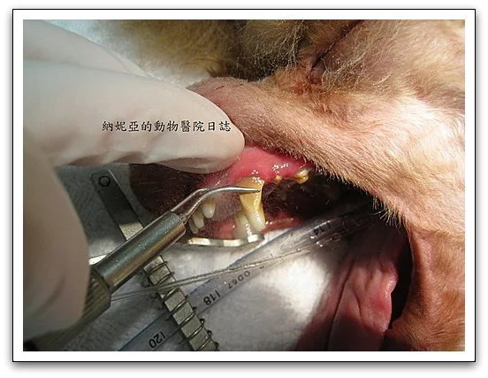大家可以清楚看到這隻狗狗的牙齒狀況,以及牙結石的累積程度。