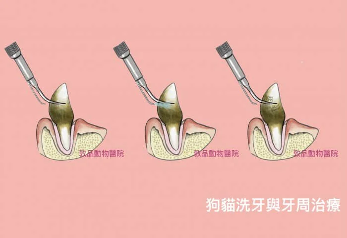 專業的狗狗洗牙包括使用超音波震盪洗牙頭清除牙齒琺瑯質表面、牙齦囊袋和牙根表面的牙結石與牙菌斑,同時進行全面的牙齒與牙齦檢查,甚至透過拍攝X光來完整檢查肉眼無法檢視的牙根部位。