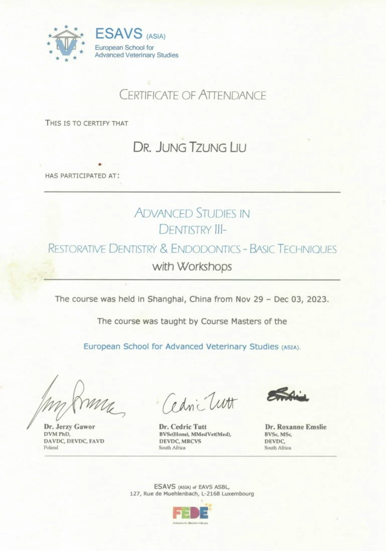 歐洲獸醫高級學院 牙科學3認證:牙體修復與根管治療