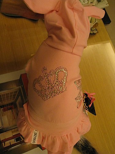 前陣子到日本買了一件粉色pinky兔兔裝給納妮亞
