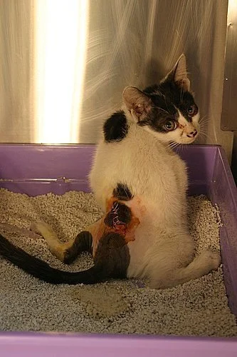 看看牠的傷口~~ 紅色的地方不是血跡唷~ 是醫師手術完上的優點